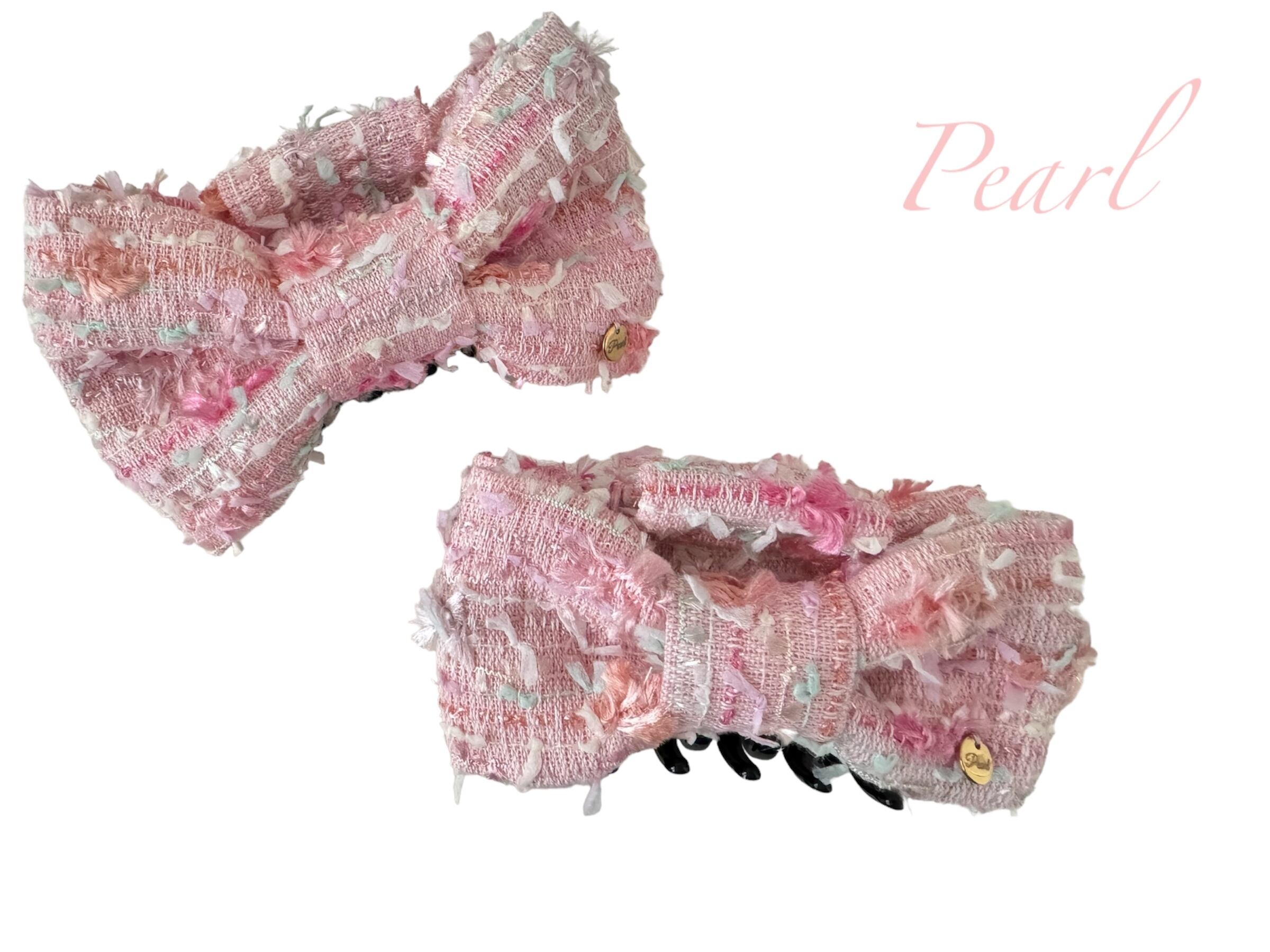 上品なピンク色のツイード生地を使用し、高級感漂う仕上がりです。さりげなくつけるだけで、コーディネートに華やかさをプラスしてくれるアイテム。日常使いから、デートまで幅広く活躍してくれます。