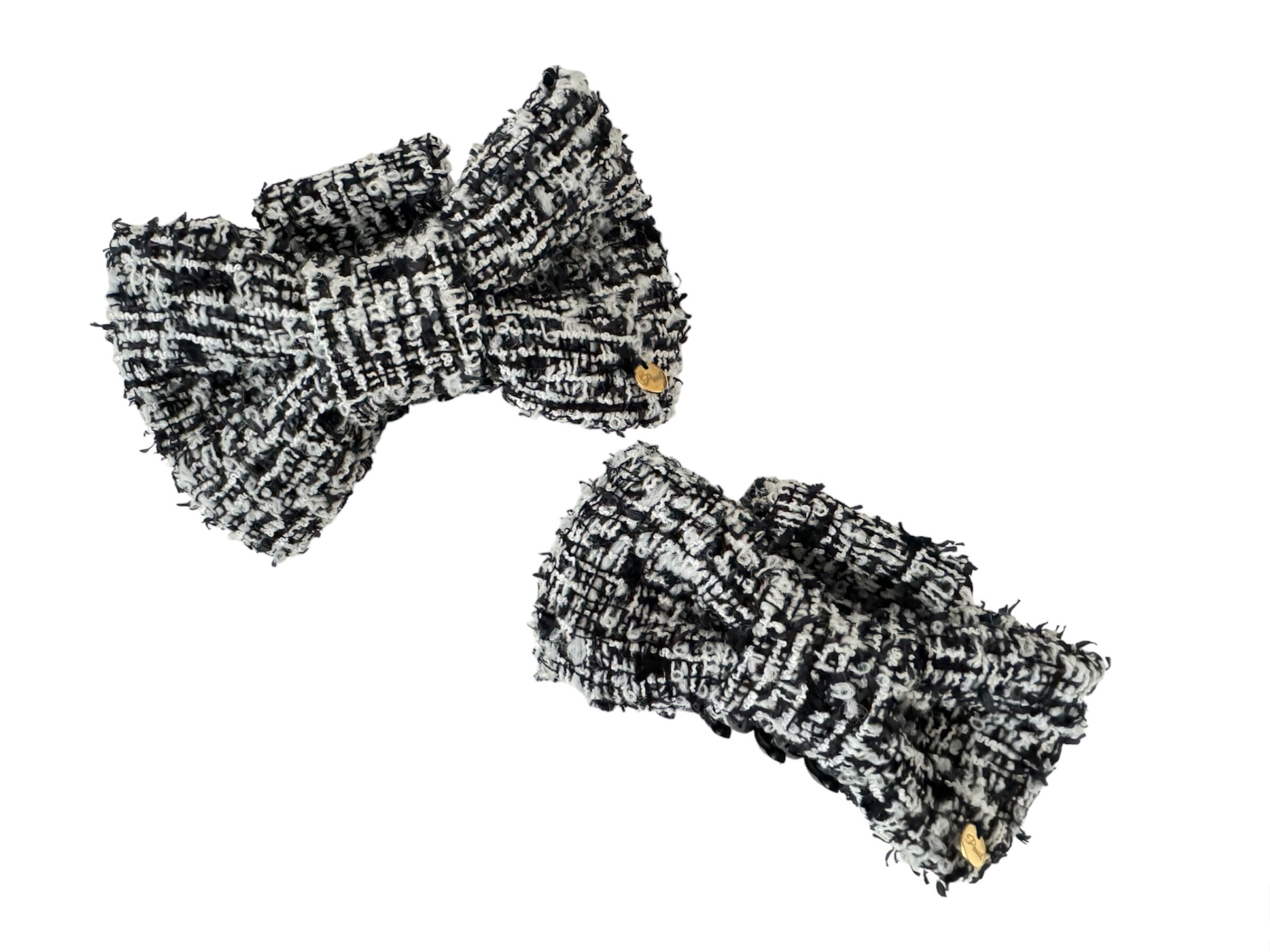 Black×Whiteのツイード柄がおしゃれなヘアアクセサリー。モノトーンなので、どんなコーディネートにも合わせやすく、季節を問わず活躍してくれます。きちんとした服装からカジュアルまで、幅広いスタイリングにマッチします。
